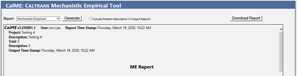 The ME report is generated by going to the Reports page and selecting ME and selecting the "Generate" button.