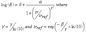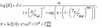 With this format trref may be used to shift the master curve left or right and γ’ may be used to change the slope of the curve. For tr = trref one has log(E) = δ + α/2.