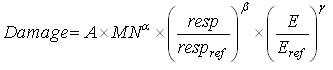 A damage function similar to the one used for fatigue damage of asphalt materials may be used for other cemented materials. It may be based on either the maximum tensile strain or stress at the bottom of the layer. The modulus of the layer is reduced by multiplying the intact modulus by (1 - w), where w is the damage.