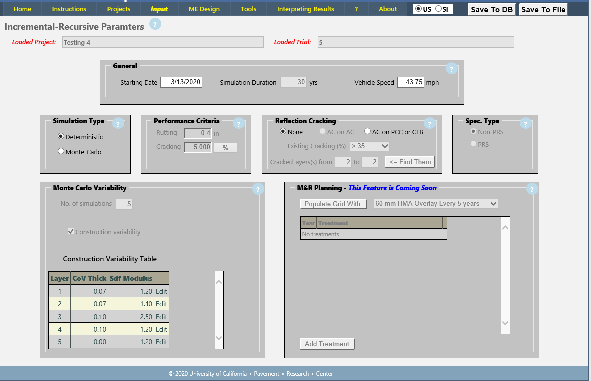 This page is used to specify data items associated with a Mechanistic-Empirical simulation: