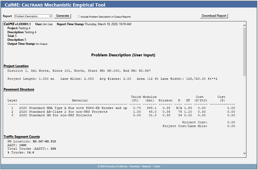This report has a section for each input area, such as Location, Pavement Structure and Monte Carlo Variability.