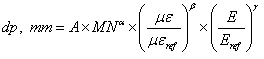 Permanent deformation, dp, of the unbound materials is based on the vertical resilient strain at the top of the layer, me, and on the modulus of the material, E: