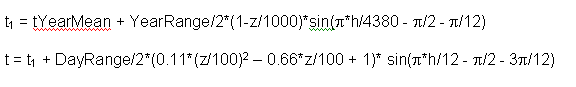Surface temperatures have been precalculated for each hour of a 30 year period, using the Enhanced Integrated Climate Model (EICM), for a number of climate zones and different pavement structures in California. The values are stored in the database EICM.mdb. The temperatures at different depths are calculated using the surface temperature, a constant deep soil temperature and the previous temperatures. It is done using a 1-D Galerkin Finite Element formulation with a finite difference time step. Calculation over one year is used to initialize the system.