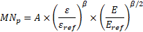 Damage as a function of number of loads, strain, temperature, and modulus. MNp is calculated in turn using the following equation: