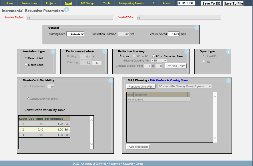 This page is used to specify data items associated with a Mechanistic-Empirical simulation: