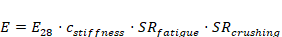 At any given time during the service life, the curing factors are first determined based on the current time. The stiffness is updated using the following equation: