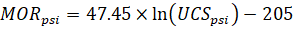 For cementitiously stabilized materials (CSM), the fatigue and crushing damage models both require strength as input. The 28-day strengths and stiffnesses for the CSMs are listed in the following table. The unconfined compressive strength (UCS) is the main input, from which both the initial (28-day) stiffness and MOR are estimated. The equations for estimating stiffness from UCS depend on the material type, while the following equation (Wen et al, 2013) is used to estimate MOR from UCS for all materials (
