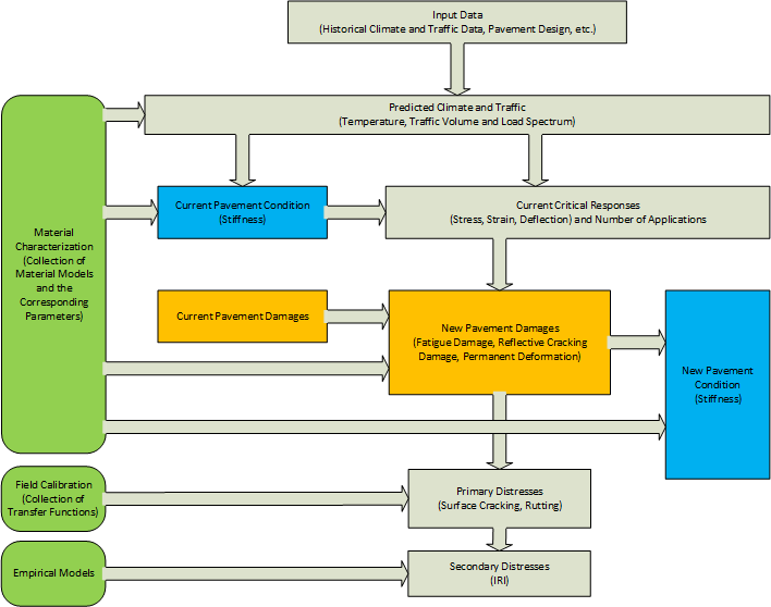 Mechanistic-empirical (ME) design procedures need to provide pavement performance predictions for the distresses included. Each critical distress requires a computational model to describe how the distress develops in each pavement layer under various loading conditions.
