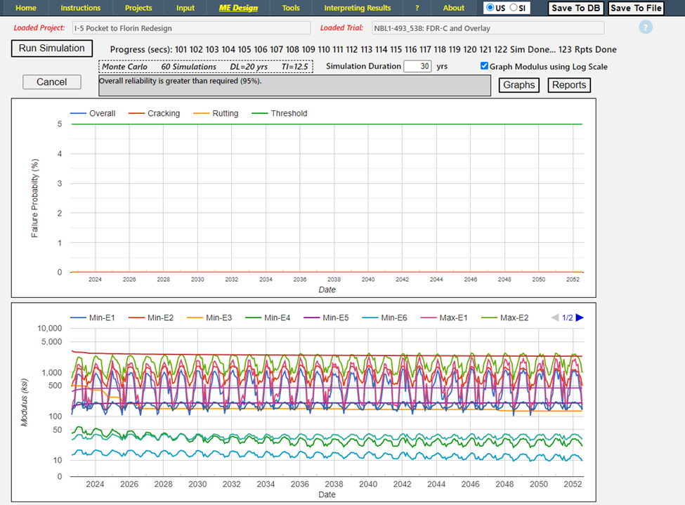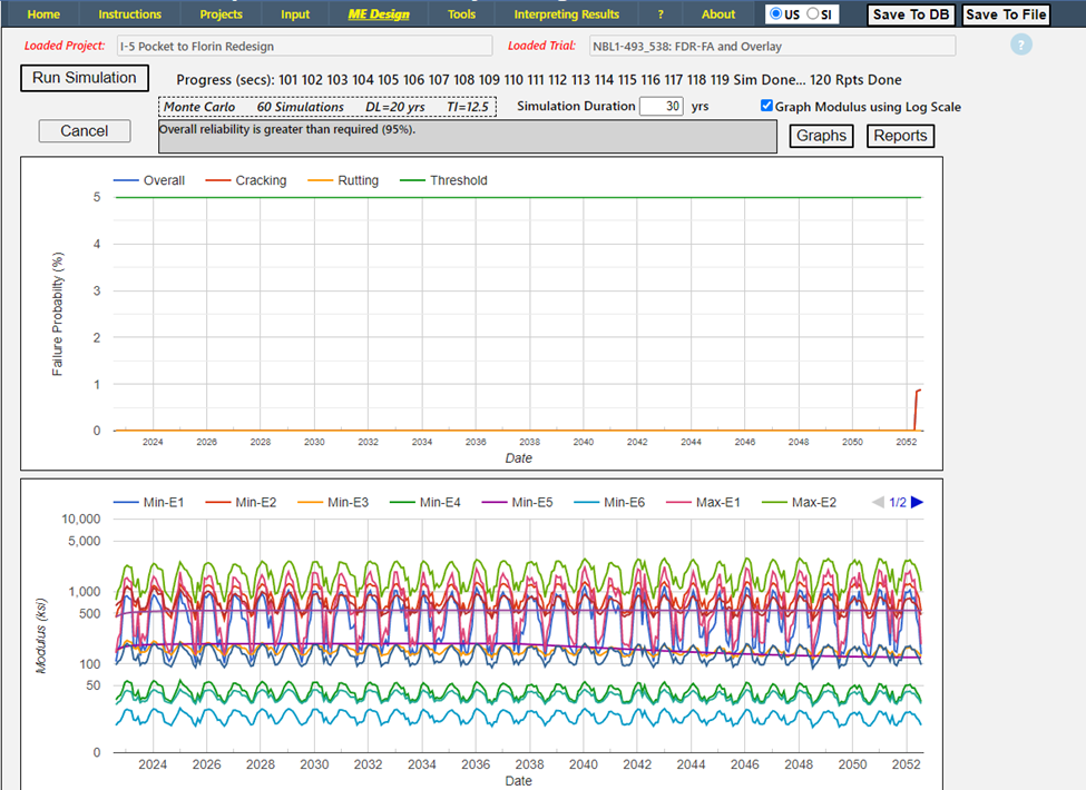 The CalME simulation results is shown below, indicating that this option meets the design requirements. In fact, it will last more than 30 years before failing in cracking.