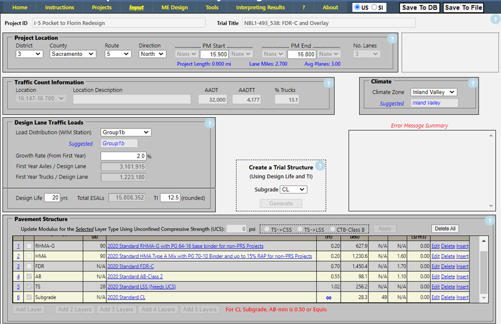 Option 2 is the same as Option 1 except the FDR-FA is replaced with FDR-C. To evaluate this option, save a copy of the trial for Option 1 with a new name "NBL1-493_538: FDR-C and Overlay". The updated structure in CalME and simulation results are shown below, which indicate that this option satisfy the design requirement as well.