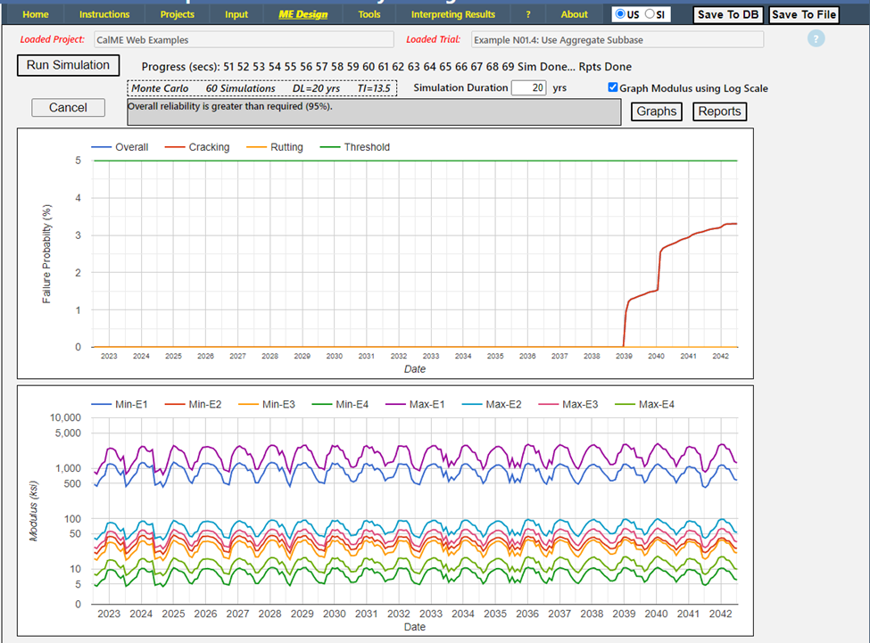 The screen shot of the pavement structure and the Monte Carlo simulation results are shown below.