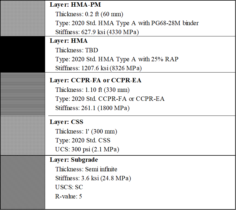 To evaluate this option, save a copy of the baseline trial for Section 3 as “Section 3: CCPR and CSS”. After removing the existing HMA and AB layer, and adding the new layers, the project inputs are shown below: