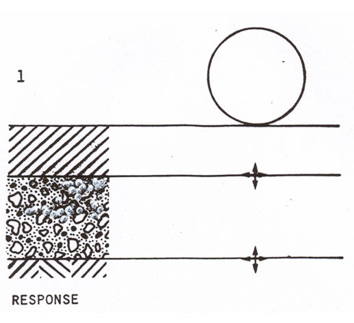 The Mechanistic-Empirical approach to pavement design makes use of fundamental physical properties and a theoretical model to predict the stresses, strains and deflections, i.e. the pavement response, caused by a load on the pavement, as illustrated below. If the basic assumptions with respect to materials and boundary conditions are correct, this method is valid anywhere and may be used to correctly predict the response for any combination of loads, climatic effects and materials.
