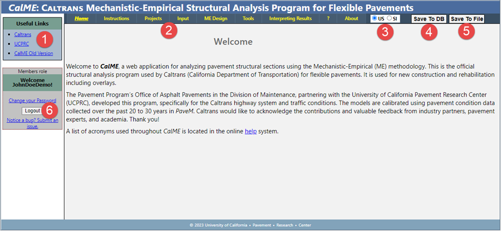 •In addition to links to Caltrans and UCPRC, link to the old version of CalME is provided here to allow smoother transition between versions.