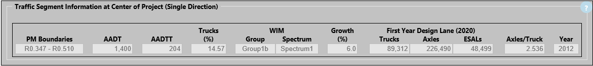 eLCAP obtains the one-way traffic data by finding the traffic segment in the Caltrans traffic database that contains the PM for the center of the project.