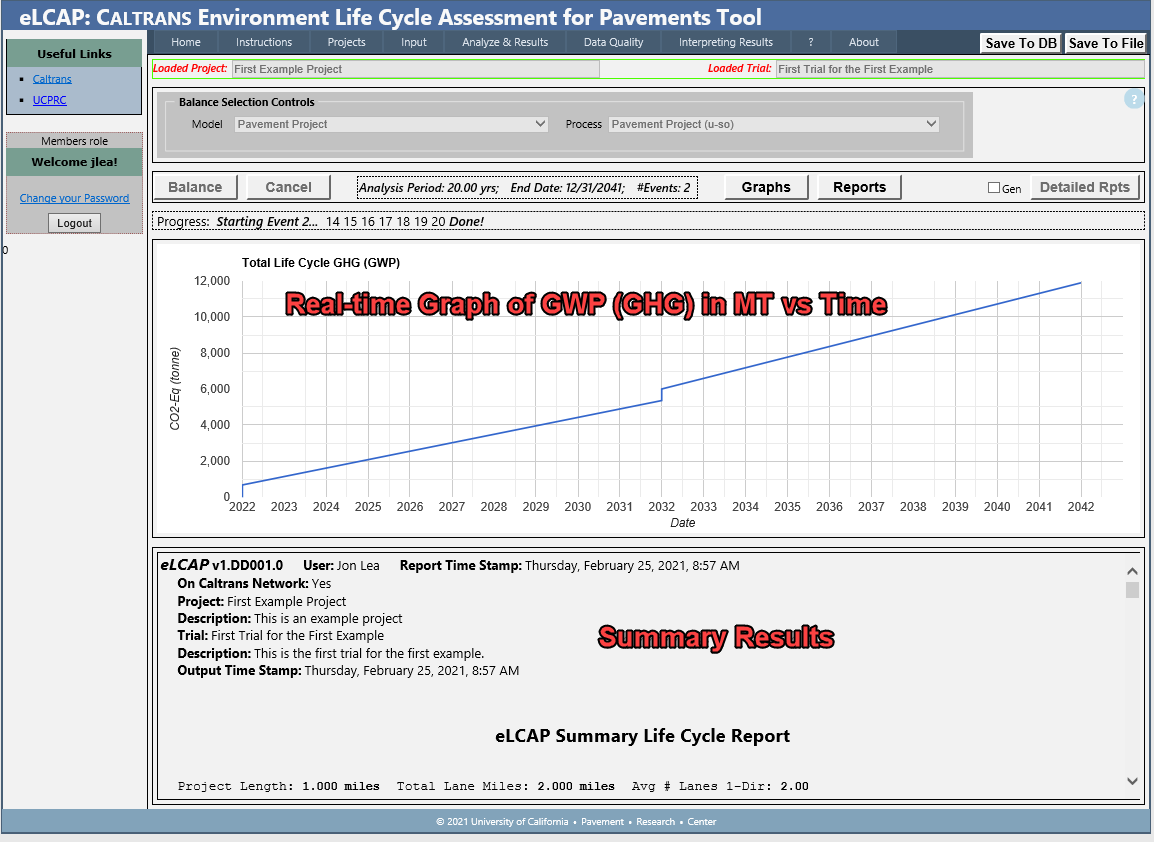 This page is used to perform a LCA analysis, also referred to as "Balance", since the process of solving the LCA model is basically scaling upstream flows according to downstream material needs. When that process is finished, then all flows and processes, are in balance. See Section 2.1 of the eLCAP Report for more details on Balancing a LCA model.