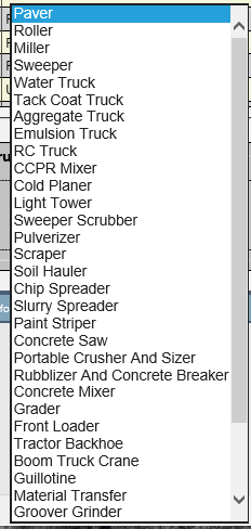 Selecting the Material dropdown control shows the available types of Materials that are available (figure on the left) and selecting the Equipment dropdown control shows the available types of equipment that are available (figure on the right); transport is the only selection available for creating a user defined transport.