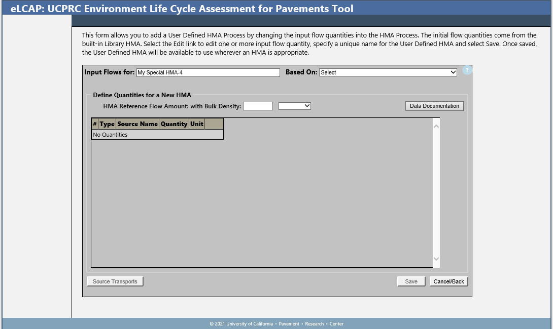 Selecting HMA and clicking on "Create New Material", for example, will bring up the following page.