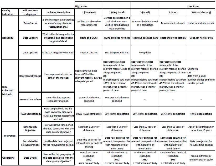 This page is shown by either selecting the Data Documentation button when viewing a library mix or adding or editing a user defined material mix, or by selecting the "Data Quality" menu shown below.