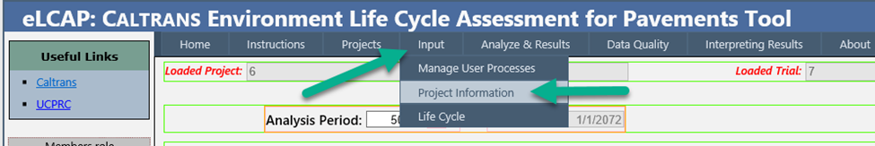 If the project is located on the Caltrans Highway system, then this page is used to specify: