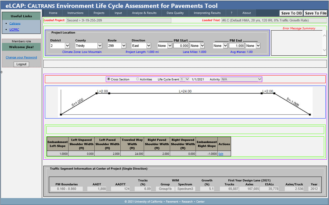 This page is used to specify the following for a project on the Caltrans highway system: