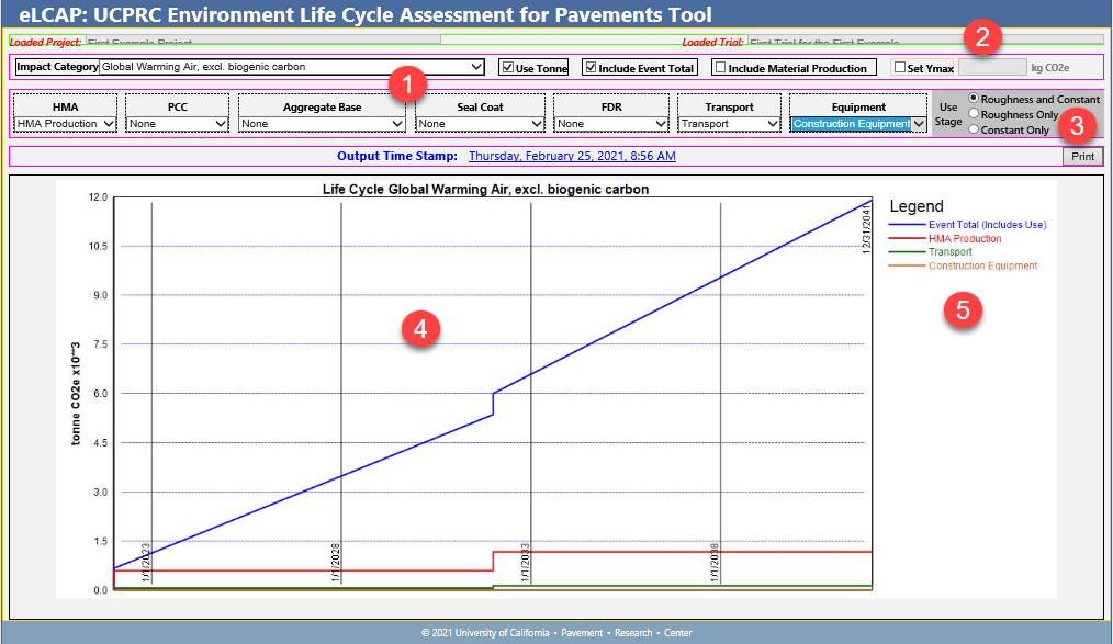 3.This set of radio buttons allow you to include some or all of the components in the IRI roughness equation used to compute GHG for the Use Stage. see Section 2.7.2 of the eLCAP Report.